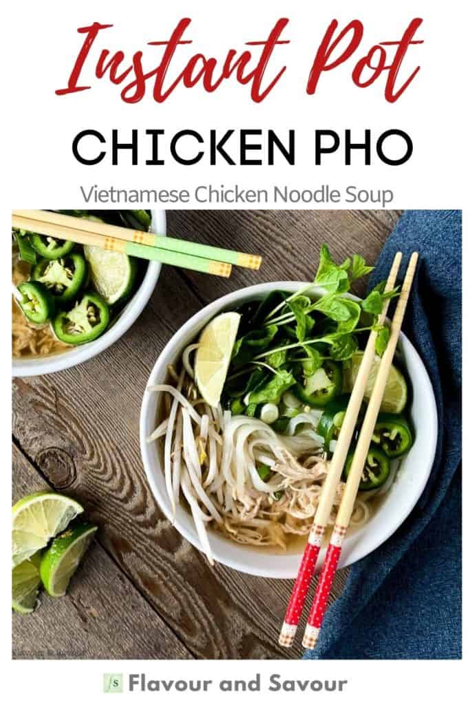 This Instant Pot Chicken Pho has a richly flavoured broth, tender chicken, and silky noodles ready for slurping! Cooked quickly in an Instant Pot, this Vietnamese Chicken Noodle Soup has all the flavour of long-simmering chicken pho.