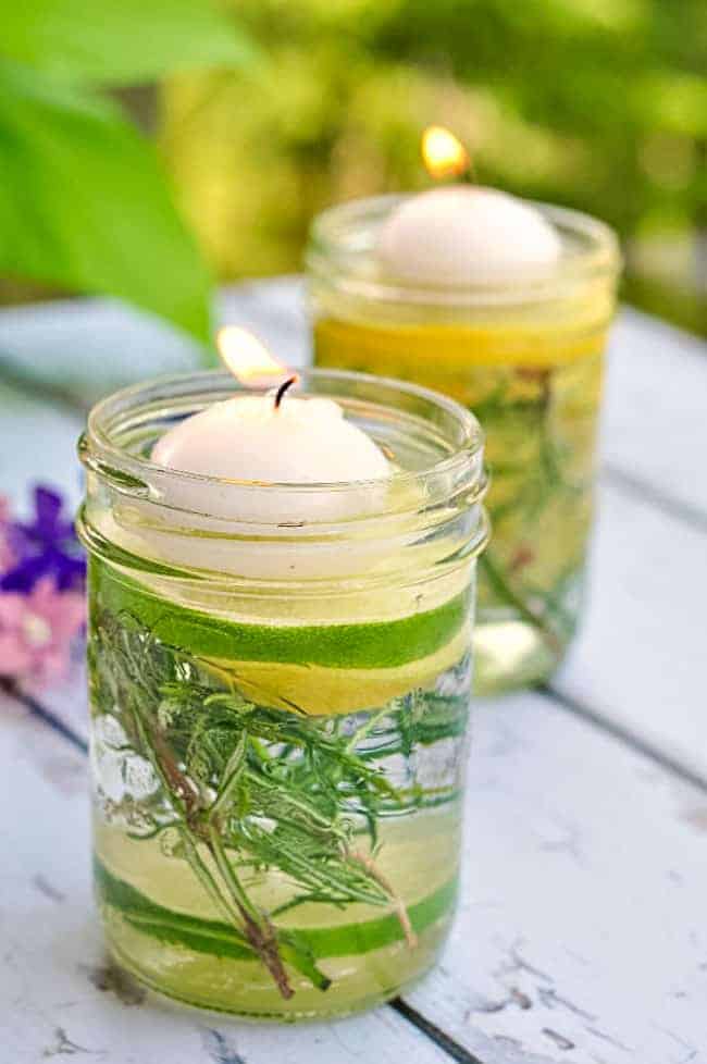i use Terrashield made by doTERRA that has 10 Essential Oils in it..works so wondefully without the nasty DEET..great idea with the floating candles..just add Terrashield and you are good to go..for pennies on the dollar..