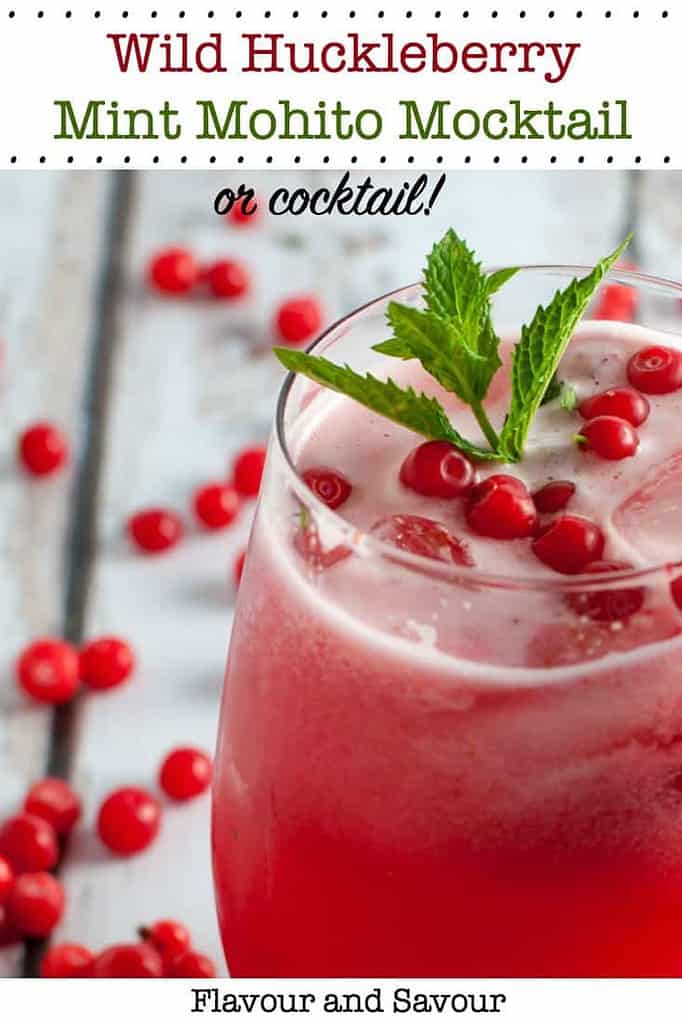 This refreshingly sweet and tart sparkling wild Huckleberry Mint Mohito mocktail is delicately flavoured with mint and lime.